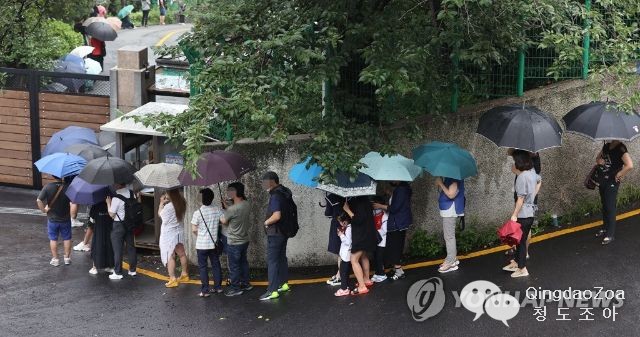 주한중국대사관 영사부 앞 비자를 받기 위한 긴 줄